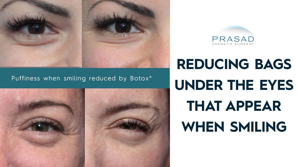 Are there any remedies or treatments to reduce the appearance of eye bags when smiling?